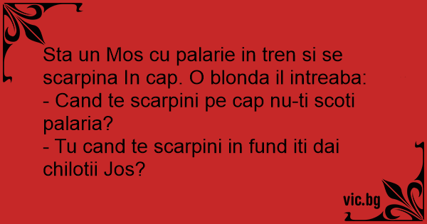 Sta un Mos cu palarie in tren si se scarpina In cap. O blonda il intreaba:
