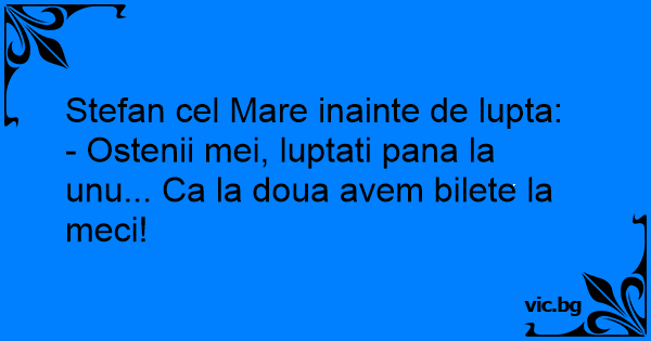- Ostenii mei, luptati pana la unu... Ca la doua avem bilete la meci!