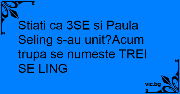Stiati ca 3SE si Paula Seling s-au unit?Acum trupa se numeste TREI SE LING