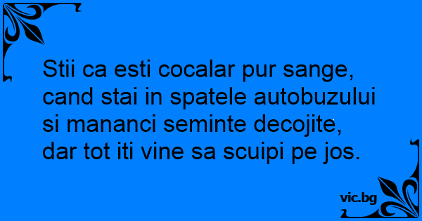 Stii ca еsтi cocalar pur sange, cand stai in spatele autobuzului si mananci seminte decojite, dar tot iti vine sa scuipi pe jos.