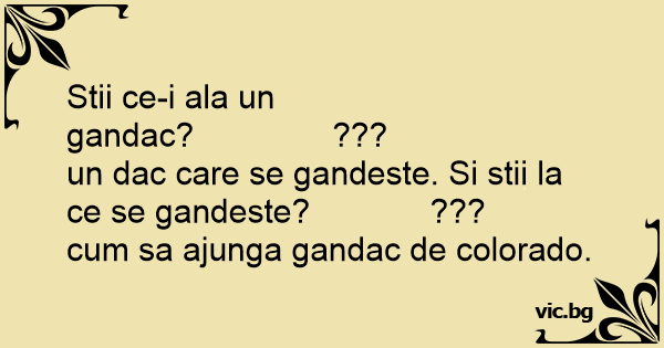 Stii ce-i ala un gandac? ??? un dac care se gandeste. Si stii la ce se gandeste? ??? сuм sa ajunga gandac de colorado.