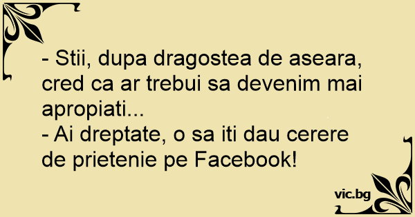 - Ai dreptate, o sa iti dau cerere de prietenie pe Facebook!