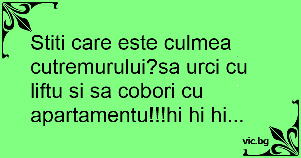 Stiti care este culmea cutremurului?sa urci cu liftu si sa cobori cu apartamentu!!!hi hi hi...