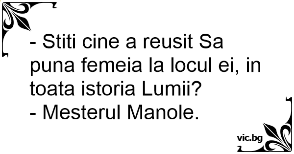 - Stiti cine a reusit Sa puna femeia la locul ei, in toata istoria Lumii?