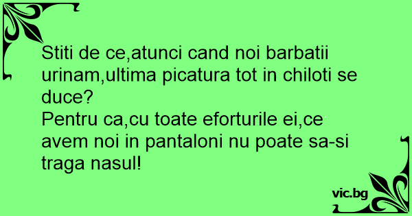 Stiti de ce,atunci cand noi barbatii urinam,ultima picatura tot in chiloti se duce?