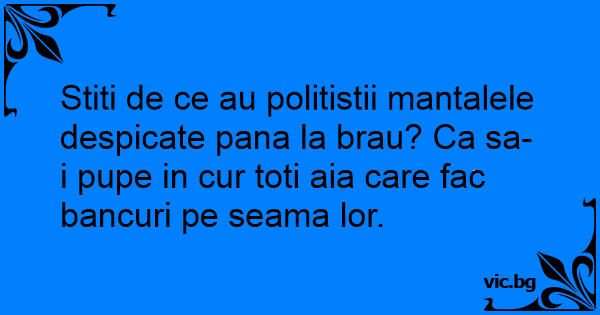 Stiti de ce au politistii mantalele despicate pana la brau? Ca sa-i pupe in cur toti aia care fac bancuri pe seama lor.