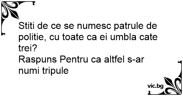 Stiti de ce se numesc patrule de politie, cu toate ca ei umbla cate trei?