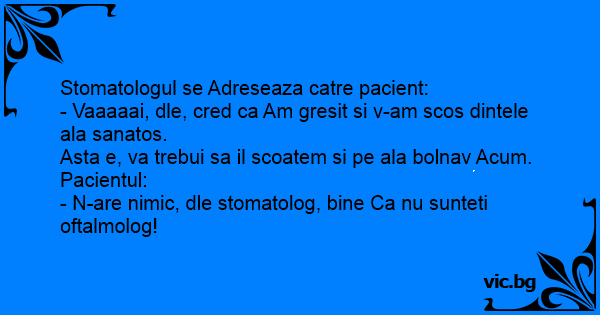 - Vaaaaai, dle, cred ca Am gresit si v-am scos dintele ala sanatos.