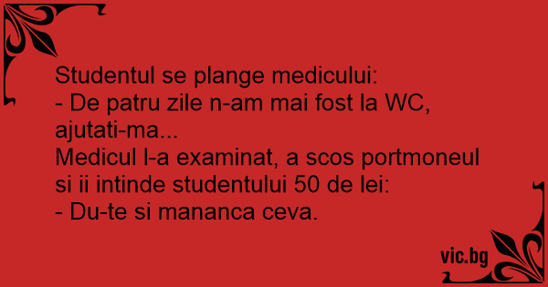 Medicul l-a examinat, a scos portmoneul si ii intinde studentului 50 de lei:
