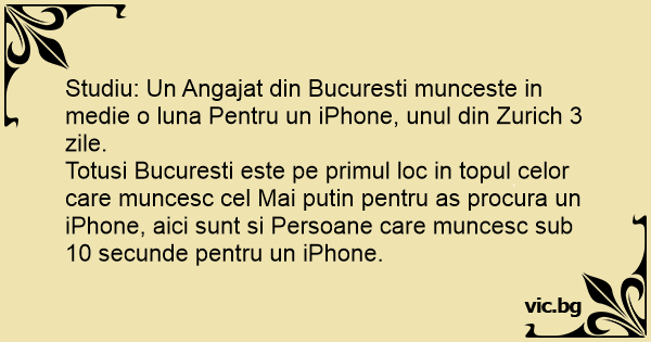 Totusi Bucuresti este pe primul loc in topul celor care muncesc cel Mai putin pentru as procura un iPhone, aici sunt si Persoane care muncesc sub 10 secunde pentru un iPhone.