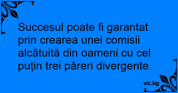 Succesul poate fi garantat prin crearea unei comisii alcătuită din oameni cu cel puţin trei păreri divergente.
