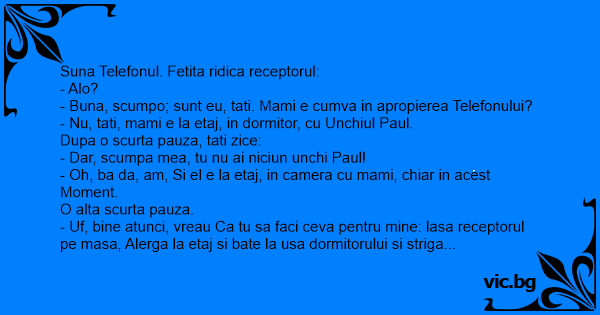 - Buna, scumpo; sunt eu, tati. Mami e cumva in apropierea Telefonului?