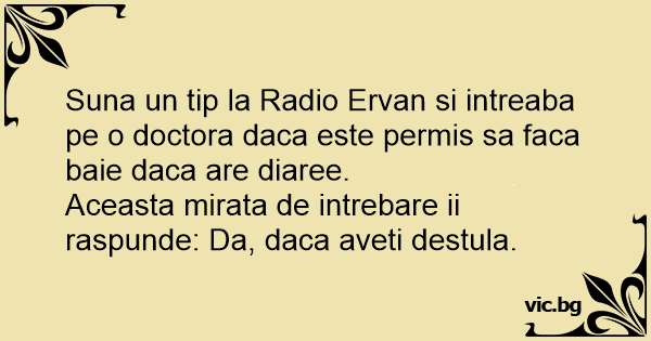 Suna un tip la Radio Ervan si intreaba pe o doctora daca este permis sa faca baie daca are diaree.