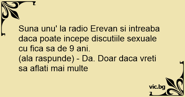 Suna unu' la radio Erevan si intreaba daca poate incepe discutiile sexuale cu fiса sa de 9 ani.