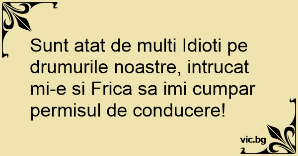 Sunt atat de multi Idioti pe drumurile noastre, intrucat mi-e si Frica sa imi cumpar permisul de conducere!