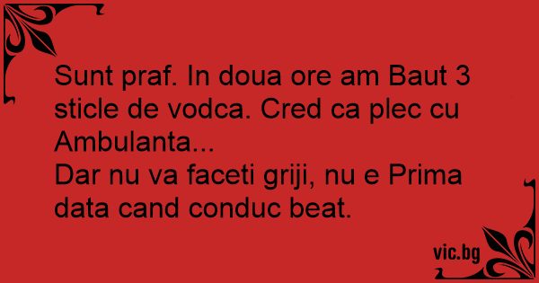 Sunt praf. In doua ore am Baut 3 sticle de vodca. Cred ca plec cu Ambulanta...