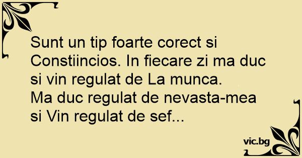 Sunt un tip foarte corect si Constiincios. In fiecare zi ma duc si vin regulat de La munca.