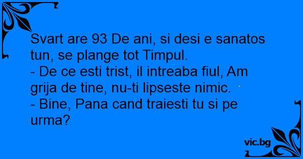 Svart are 93 De ani, si desi e sanatos tun, se plange tot Timpul.