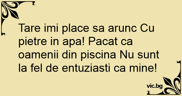 Tare imi place sa arunc Cu pietre in apa! Pacat ca oamenii din piscina Nu sunt la fel de entuziasti ca mine!