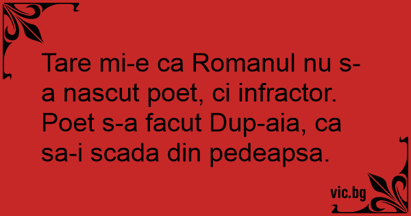 Tare mi-e ca Romanul nu s-a nascut poet, ci infractor. Poet s-a facut Dup-aia, ca sa-i scada din pedeapsa.