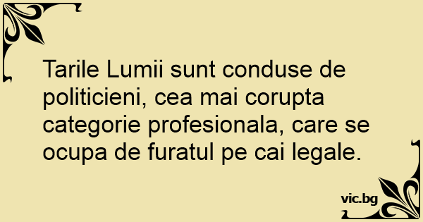 Tarile Lumii sunt conduse de politicieni, cea mai corupta categorie profesionala, care se ocupa de furatul pe cai legale.