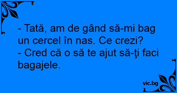 - Tată, am de gând să-mi bag un cercel în nas. Ce crezi?