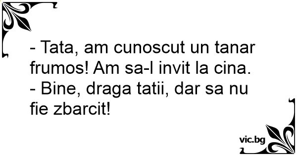 - Tata, am cunoscut un tanar frumos! Am sa-l invit la cina.