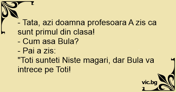 - Tata, azi doamna profesoara A zis ca sunt primul din clasa!