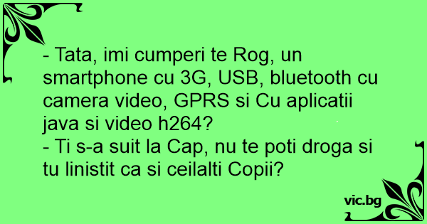 - Tata, imi cumperi te Rog, un smartphone cu 3G, USB, bluetooth cu camera video, GPRS si Cu aplicatii java si video h264?