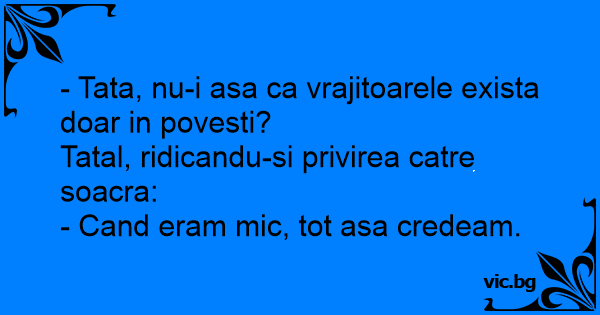 - Тате, вещиците не съществуват, нали? - Ех, и аз като бях малък си мислех така...
