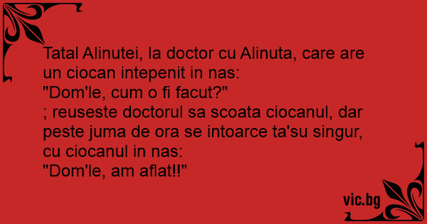 ; reuseste doctorul sa scoata ciocanul, dar peste juma de ora se intoarce ta'su singur, cu ciocanul in nas: