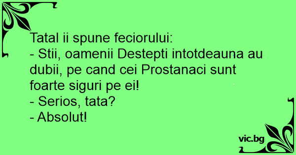 - Stii, oamenii Destepti intotdeauna au dubii, pe cand cei Prostanaci sunt foarte siguri pe ei!