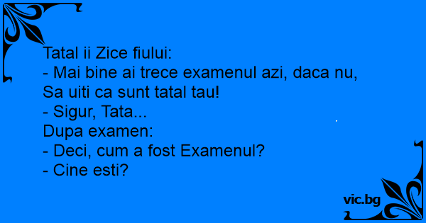- Mai bine ai trece examenul azi, daca nu, Sa uiti ca sunt tatal tau!