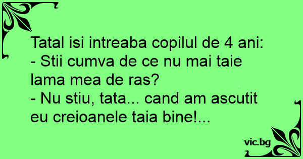 - Nu stiu, tata... cand am ascutit eu creioanele taia bine!...