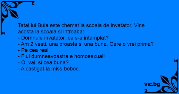Tatal lui Bula este chemat la scoala de invatator. Vine acesta la scoala si intreaba: