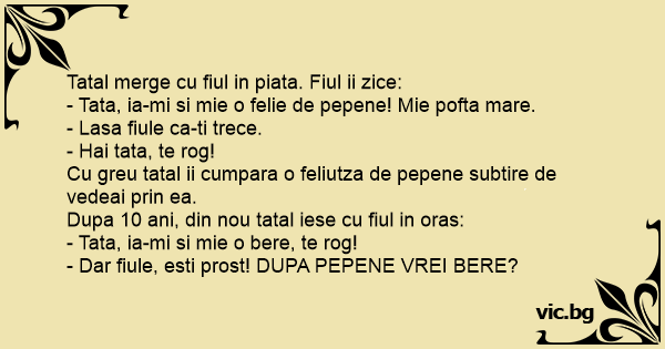 Tatal merge cu fiul in piata. Fiul ii zice:
