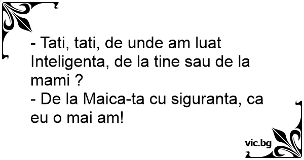 - Tati, tati, de unde am luat Inteligenta, de la tine sau de la mami ?