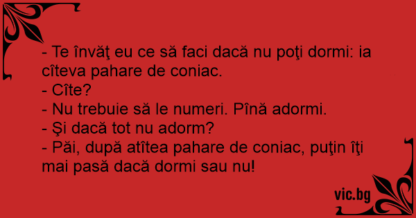 - Te învăţ eu ce să faci dacă nu poţi dormi: ia cîteva pahare de coniac.