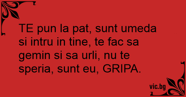 TE pun la pat, sunt umeda si intru in tine, te fac sa gemin si sa urli, nu te speria, sunt eu, GRIPA.