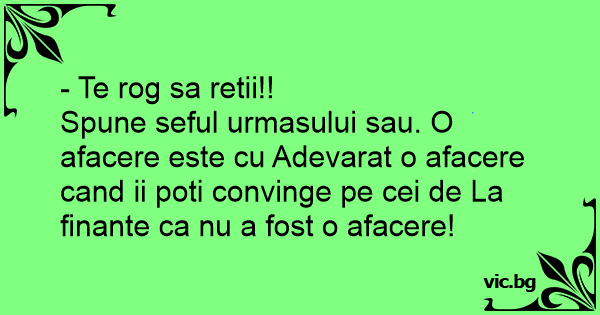 Spune seful urmasului sau. O afacere este cu Adevarat o afacere cand ii poti convinge pe cei de La finante ca nu a fost o afacere!