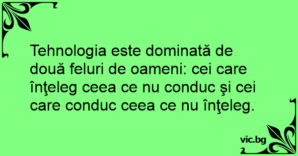 Tehnologia este dominată de două feluri de oameni: cei care înţeleg ceea ce nu conduc şi cei care conduc ceea ce nu înţeleg.