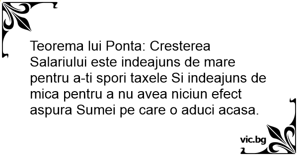 Teorema lui Ponta: Cresterea Salariului este indeajuns de mare pentru a-ti spori taxele Si indeajuns de mica pentru a nu avea niciun efect aspura Sumei pe care o aduci acasa.