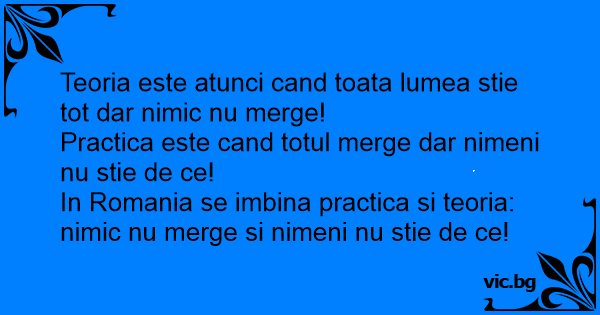 In Romania se imbina practica si teoria: nimic nu merge si nimeni nu stie de ce!