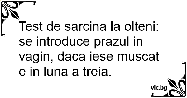 Test de sarcina la olteni: se introduce prazul in vagin, daca iese muscat e in luna a treia.