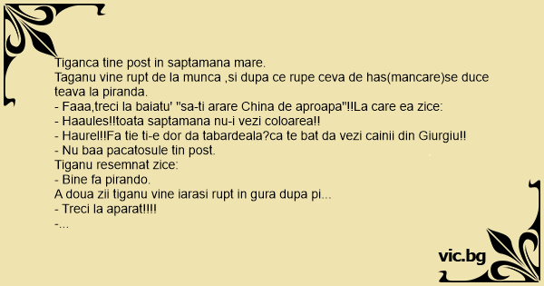 Tiganca tine post in saptamana mare.