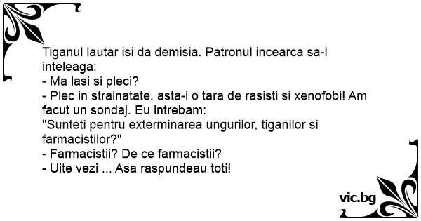 - Plec in strainatate, asta-i o tara de rasisti si xenofobi! Am facut un sondaj. Eu intrebam: