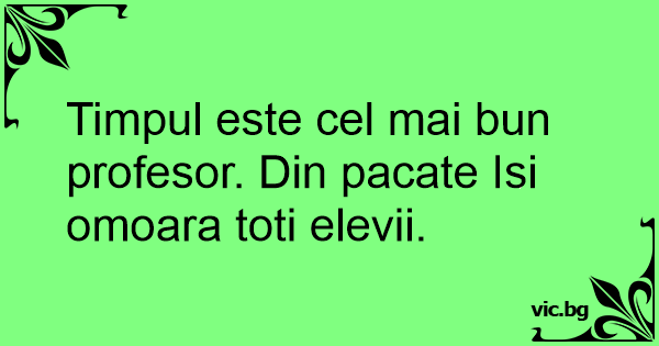 Timpul este cel mai bun profesor. Din pacate Isi omoara toti elevii.