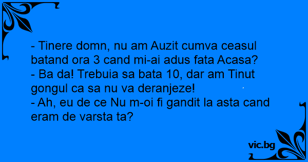 - Tinere domn, nu am Auzit cumva ceasul batand ora 3 cand mi-ai adus fata Acasa?