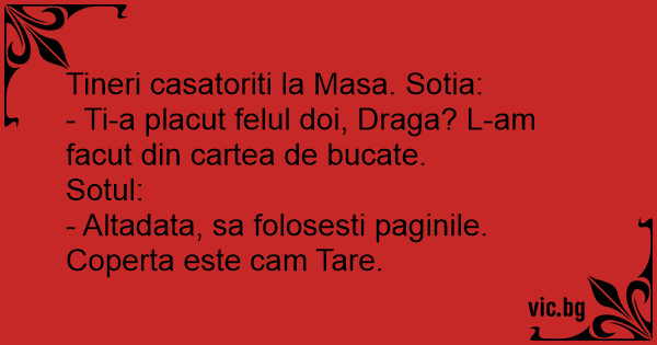 - Ti-a placut felul doi, Draga? L-am facut din cartea de bucate.