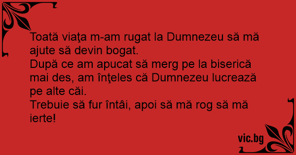 Toată viaţa m-am rugat la Dumnezeu să mă ajute să devin bogat.